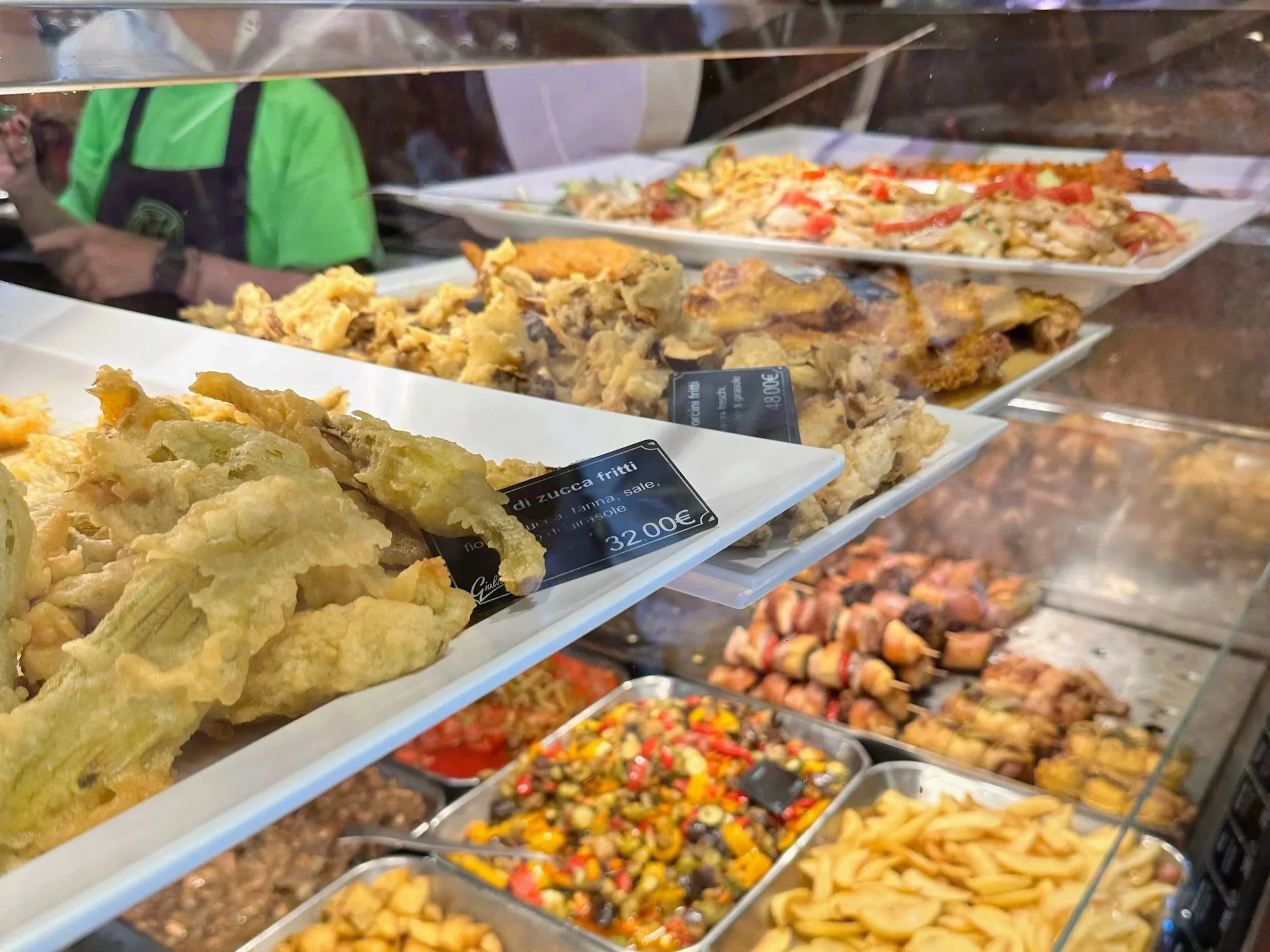 You’ll often hear the word rosticceria used alongside gastronomia, and while they’re similar, there is a distinction. A rosticceria focuses primarily on hot, cooked foods, often roasted or fried — think roast meats, vegetables, lasagna, and other comforting classics meant to be eaten right away or taken home.